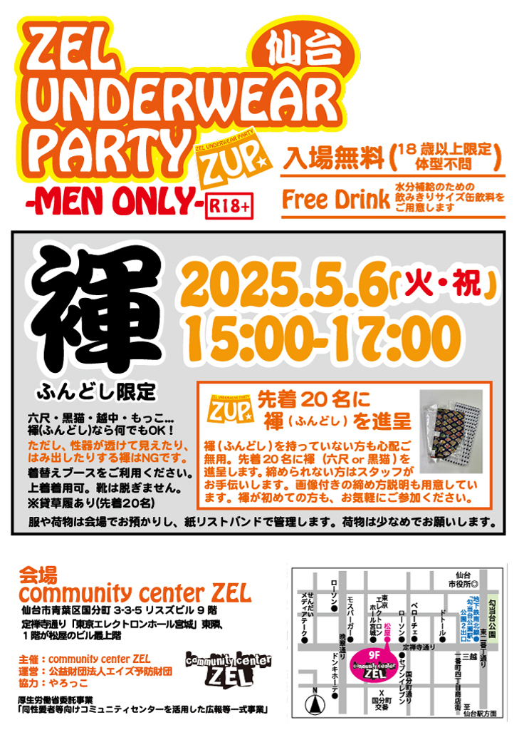 褌(ふんどし)を持っていない方も心配ご無用。先着20名に褌(六尺or黒猫)を進呈します。